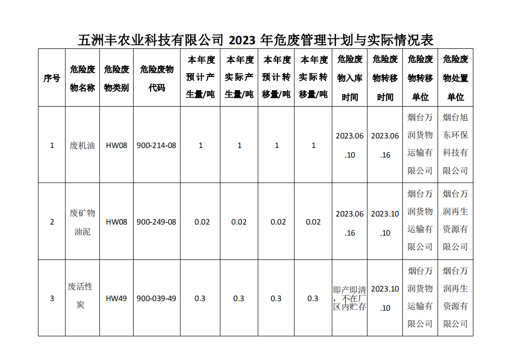 五(wu)洲(zhou)豐2023危廢處寘(zhi)情(qing)況公(gong)示錶(biao)